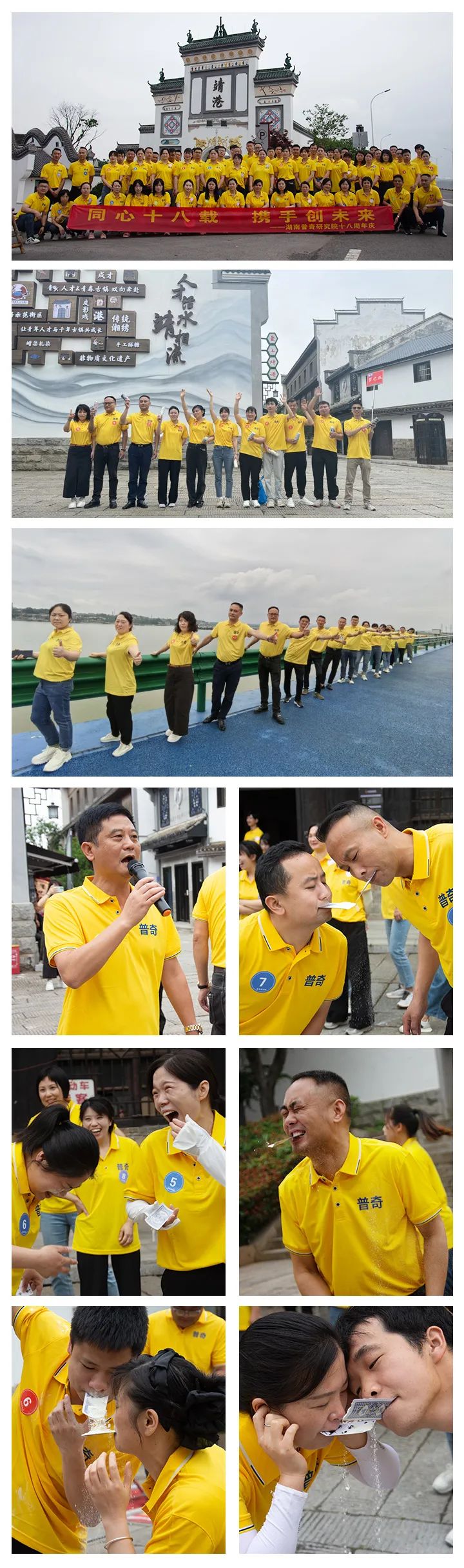 2024年5月19日,單位十八周年慶典盛大開啟。大家在單位大樓前集合,拍下紀念合影,隨后車隊駛向周年慶地點靖港古鎮。