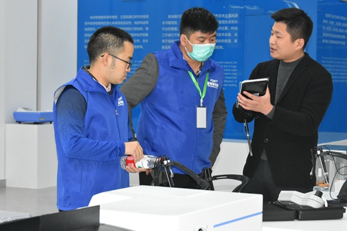 水質分析檢測廣泛應用于生活用水、環保檢測、實驗教學、醫藥衛生、臨床檢測、生物化學、石油化工、食品衛生和質量控制等領域,市場前景巨大,為學員的測漏事業可以拓寬方向,學員正在認真聽取工作人員的講解。