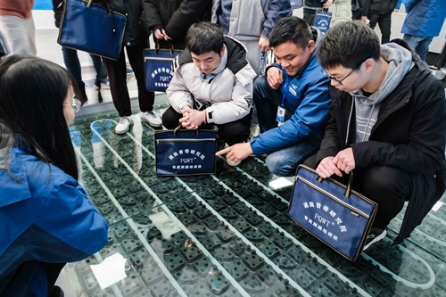 自動尋找漏點,學員驚訝的問。普奇工作人員正在為學員分享全自動地暖管道漏點定位儀的使用方法。小小定位器,進入管道中,定位漏點處,儀器告訴你。