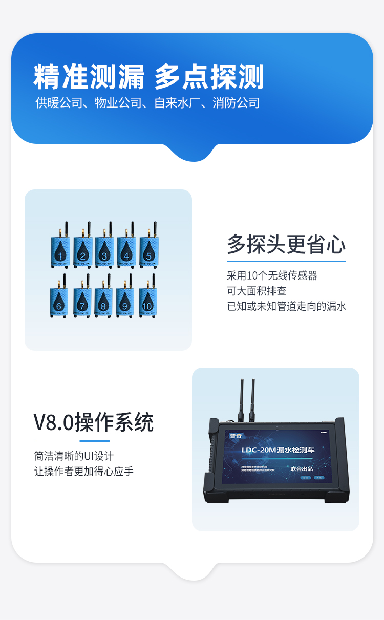 2、適用于大面積快速對供水、供熱、消防等管道進行漏水檢測和巡查工作。