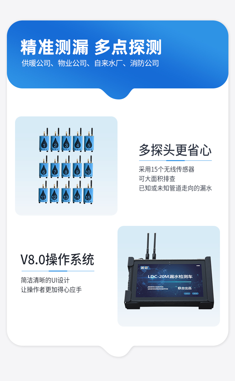 2、適用于大面積快速對供水、供熱、消防等管道進(jìn)行漏水檢測和巡查工作。