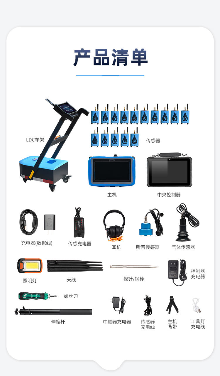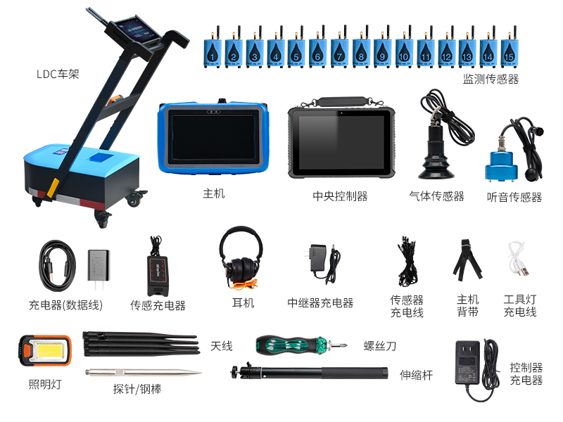 該設(shè)備采用B-P算法技術(shù),配備15個無線監(jiān)測傳感器收集不同區(qū)域數(shù)據(jù),通過信號中繼器無線傳輸?shù)街醒肟刂破鬟M(jìn)行高效快速分析,從而實現(xiàn)自動判斷,自動甄別漏水點。同時還可實時錄音,采集的數(shù)據(jù)可以導(dǎo)出保存,方便測漏報告的制作,這些功能使得巡查管理工作更加的便捷。此設(shè)備已獲13項發(fā)明與實用新型專利授權(quán)。