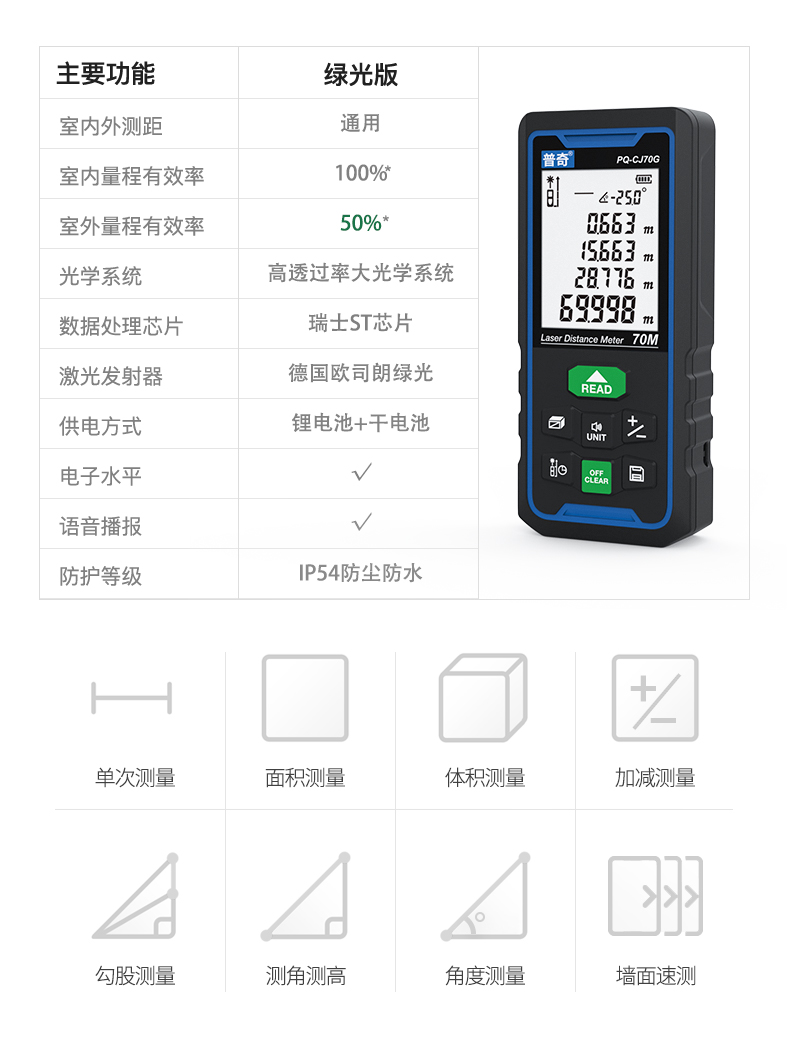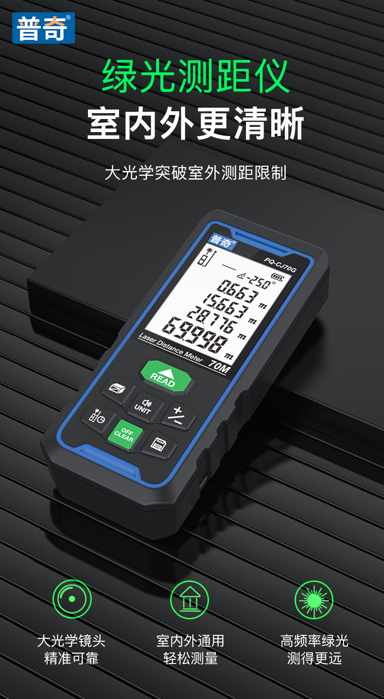 普奇 CJ70G 測距儀,搭載先進激光測量技術,測量快速精準,誤差小。具備大屏顯示、操作簡便等特點,適用于裝修、工程測繪、家居設計等場景,滿足多樣化距離測量需求,是專業人士與家庭用戶的理想測量工具。
