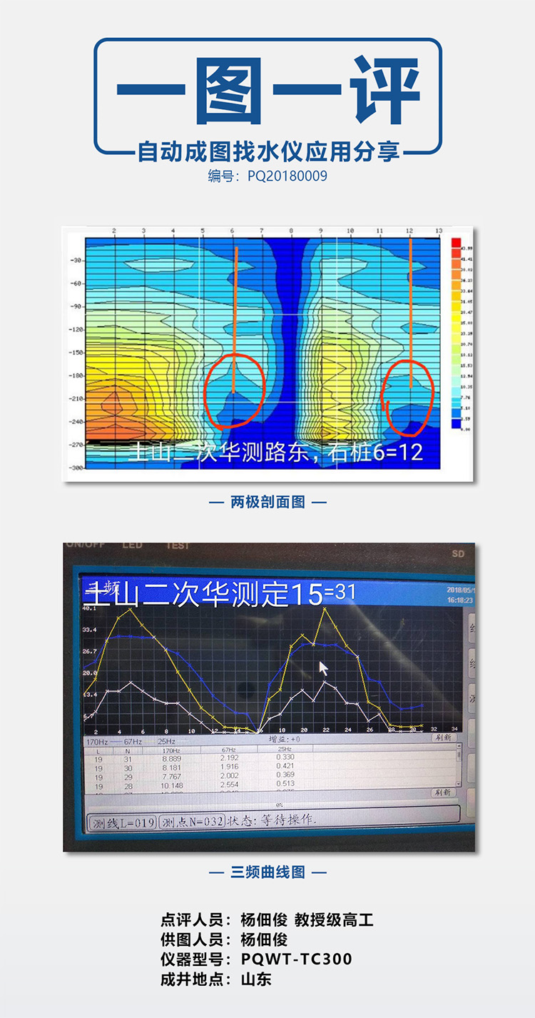 2.兩級剖面圖點距2.5米,是三頻點距的1/2,兩者的測點號便于比對。8號為空測,向右為復測,一致性好。