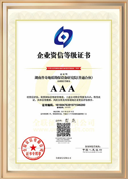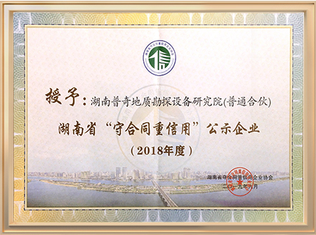 湖南省守合同重信用公示企業證書