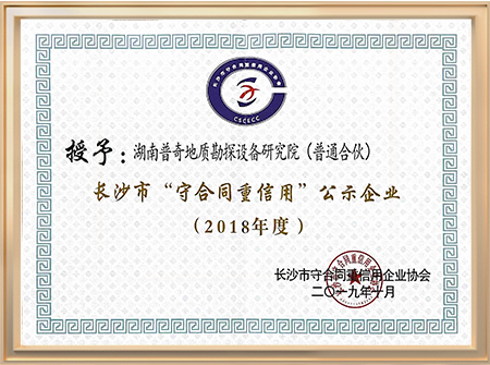 長沙市守合同重信用公示企業證書